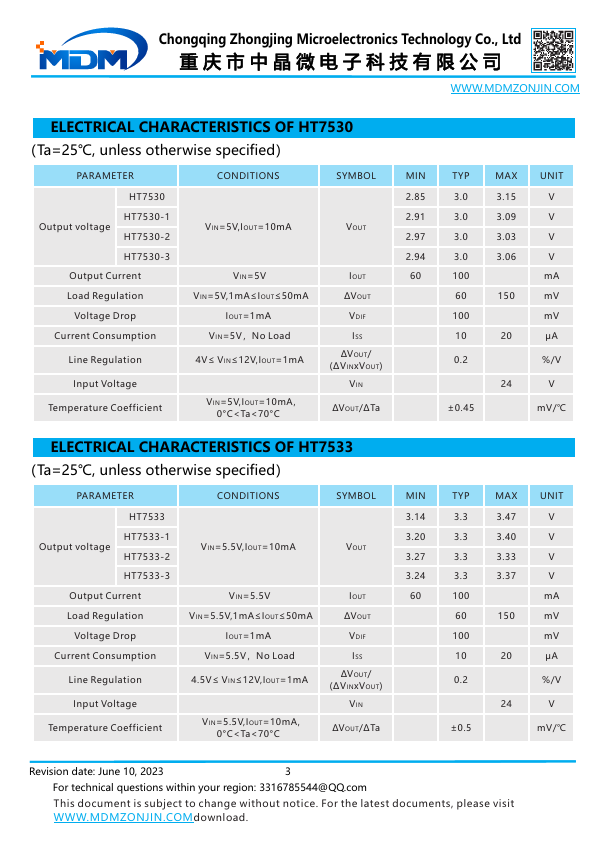 Chongqing Zhongjing Microelectronics Technology Co., Ltd 重庆市中晶微电子科技有限公司 .MDMZONJIN. LOW DROP LINEAR VOLTAGE REGULATORS HT7530 THRU HT7580.