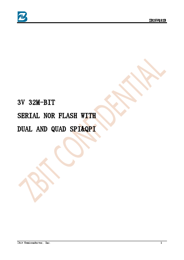 The ZB25VQ32B of non-volatile flash memory device supports the standard Serial Peripheral Interface (SPI). Traditional SPI single.