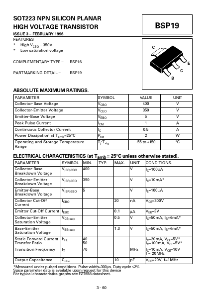 | Datasheet | BSP19-ZetexSemiconductors.pdf |