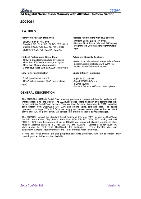 - Standard SPI: CLK, /CS, DI, DO, /WP, /Hold