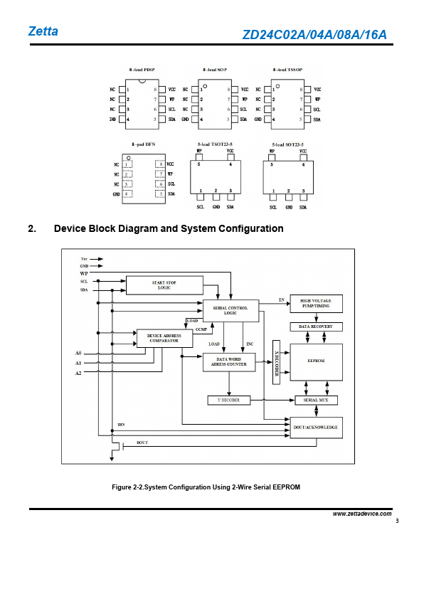 The device is optimized for use in many industrial and mercial applications where low-power and lowvoltage operation are essential. Pin Descriptions and Pinouts ZD24C02A/04A/08A/16A Pin Number Pin Symbol Table 1-1.Pin Descriptions Pin Name and Functional Description Asserted State Pin Type 1, 2,3 NC No Connect: The NC pins are not bonded to a die pad.