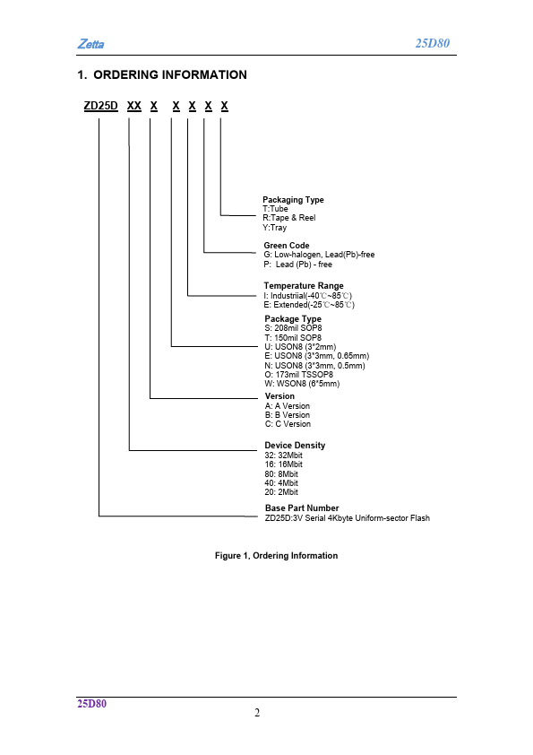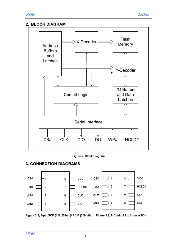 The ZD25D80 is a 8 Megabit (1024K-byte) Serial Flash memory, with advanced write protection mechanisms. The ZD25D80 supports the standard Serial Peripheral Interface (SPI), and a high performance Dual output using SPI pins: Serial Clock, Chip Select, Serial DIO, DO, WP#.