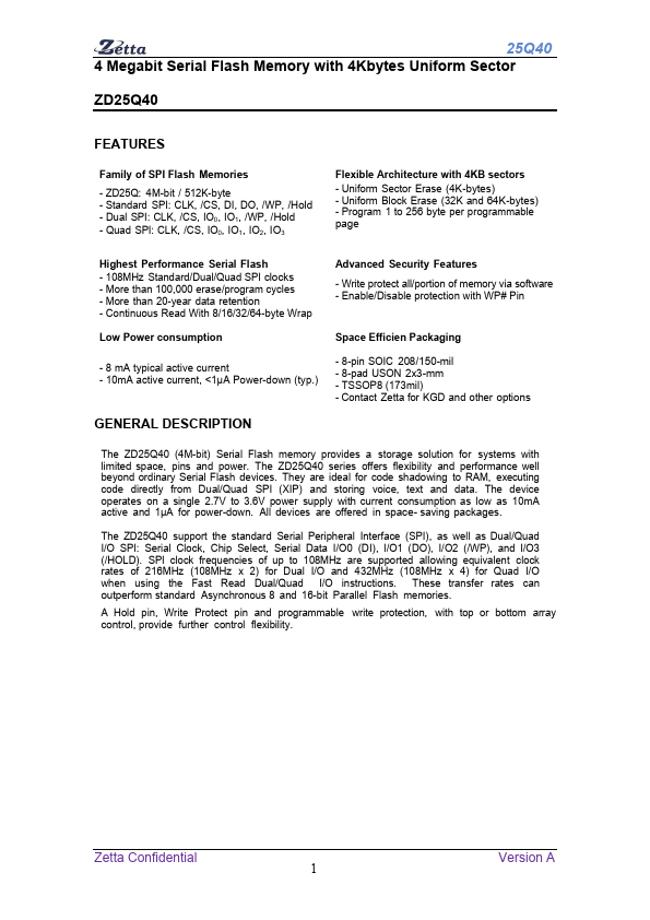 - ZD25Q: 4M-bit / 512K-byte