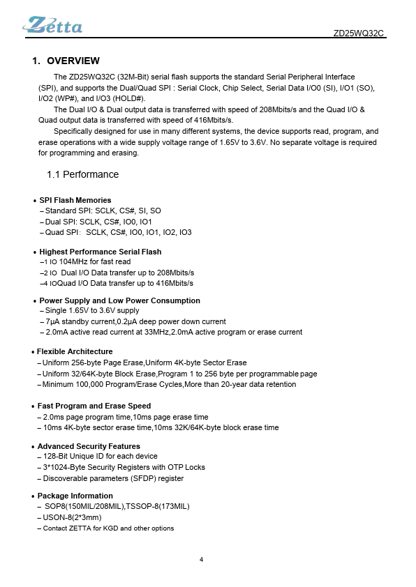 ZD25WQ32C Array Organization Each block has Each sector has Each page has 64/32K 4K 256 256/128 16.