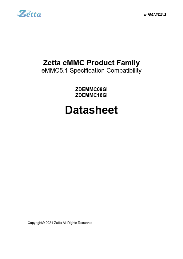 Zetta eMMC product is a high quality and cost advantage embedded storage solution and patible with JEDEC standard eMMC5.1 specification. Its strong ECC engine significantly improves error correction enabling longer device lifetime and an increased ability to handle higher raw bit error rate. The Zetta eMMC product consists of NAND flash and an eMMC controller.