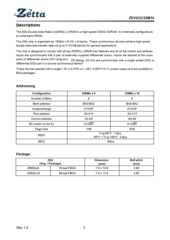 - VDD=VDDQ=1.5V(1.425V~1.575V) VDD=VDDQ=1.35V(1.28V~1.45V),backward patible to 1.5V