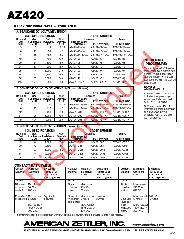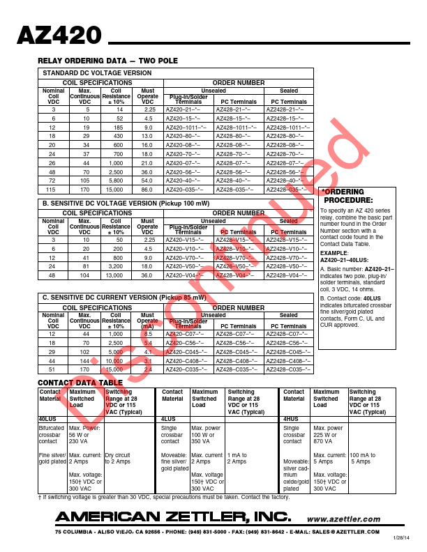 AZ420 MINIATURE GENERAL PURPOSE RELAY.