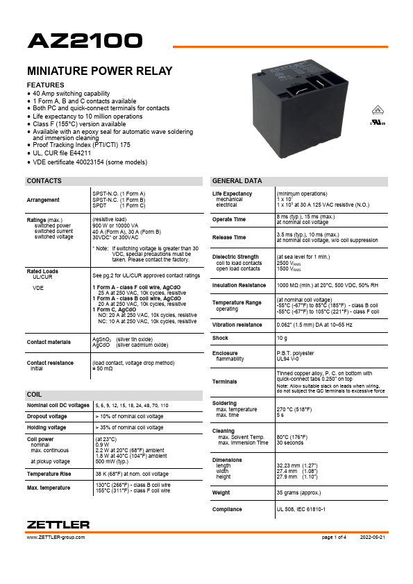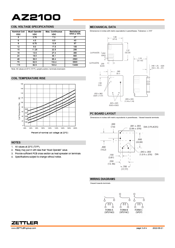 - Note: If switching voltage is greater than 30 VDC, special precautions must be taken. Please contact the factory