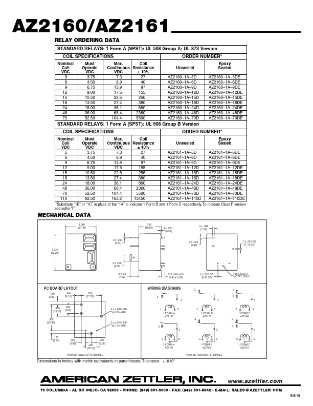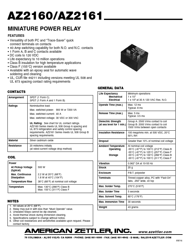 AZ2160/AZ2161 MINIATURE POWER RELAY.