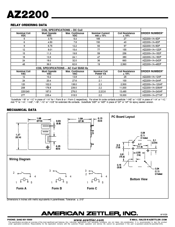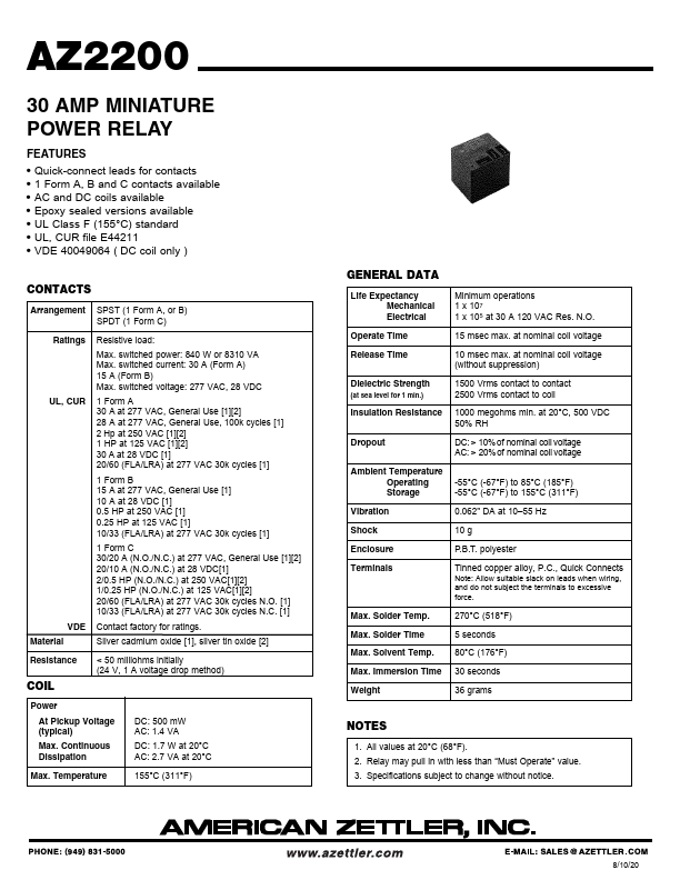 AZ2200 30 AMP MINIATURE POWER RELAY.