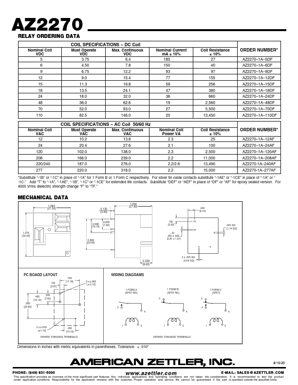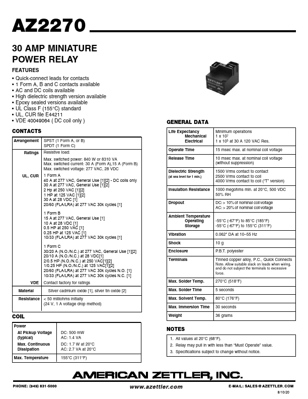 AZ2270 30 AMP MINIATURE POWER RELAY.