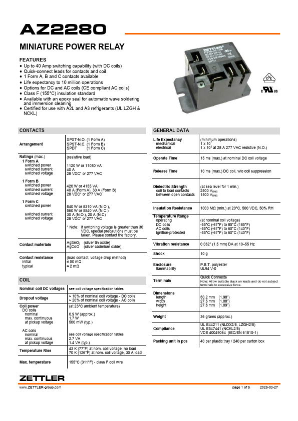 AZ2280 MINIATURE POWER RELAY.