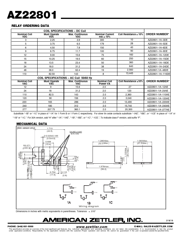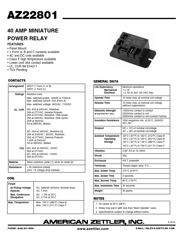 AZ22801 40 AMP MINIATURE POWER RELAY.