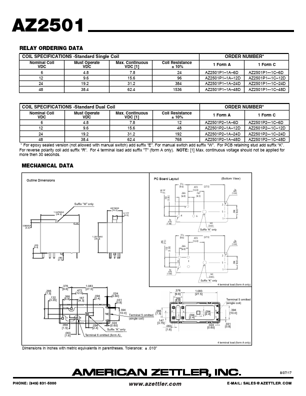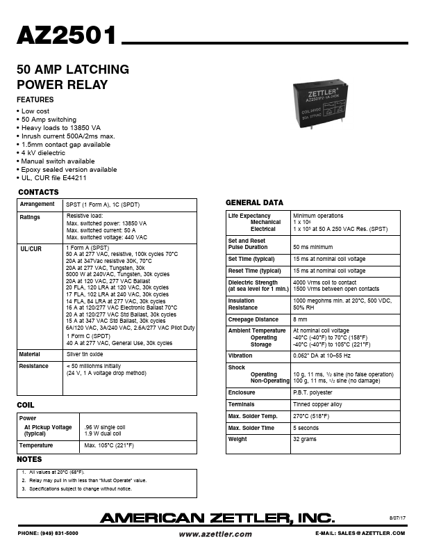 AZ2501 50 AMP LATCHING POWER RELAY.