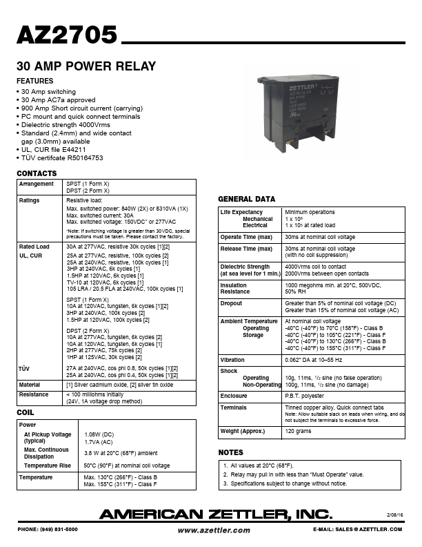 AZ2705 30 AMP POWER RELAY.