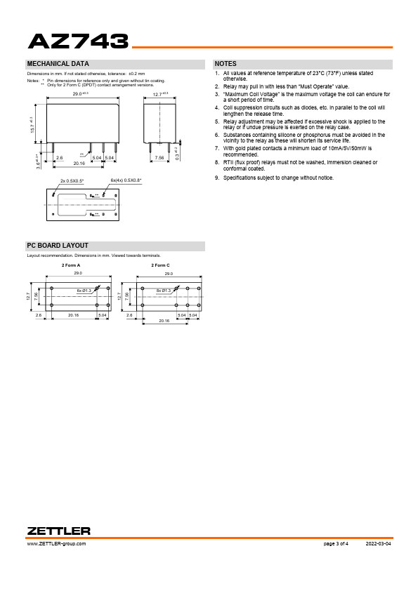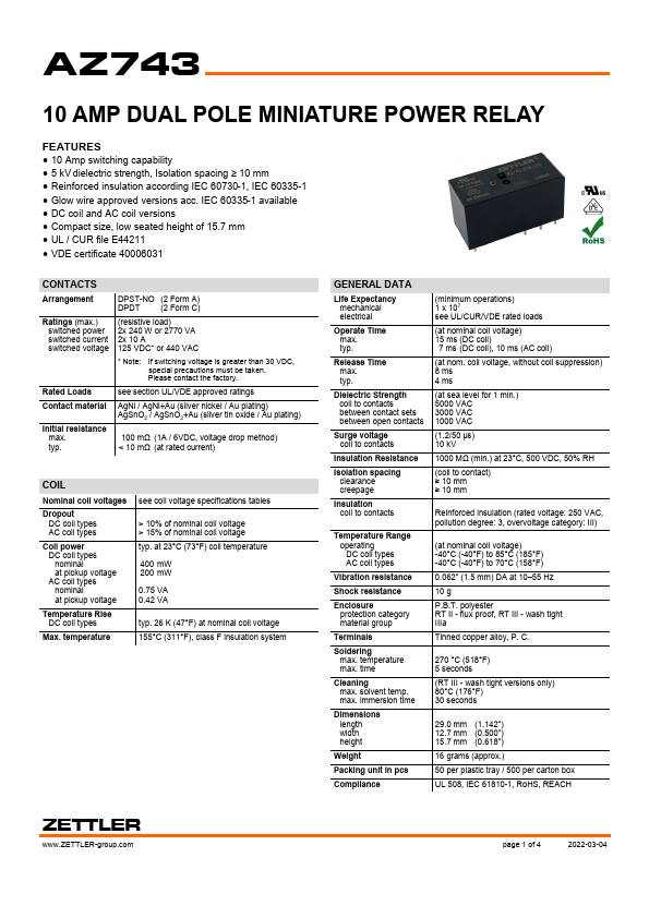 AZ743 10 AMP DUAL POLE MINIATURE POWER RELAY.