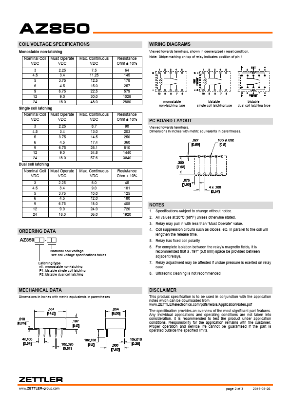 AZ850 MICROMINIATURE POLARIZED RELAY.