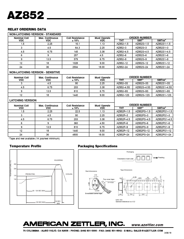 AZ852 MICROMINIATURE POLARIZED RELAY.