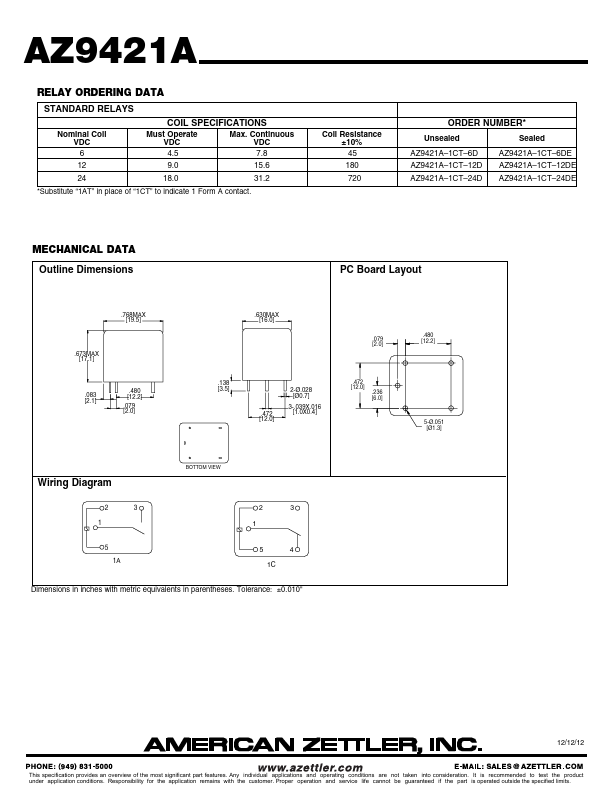- Substitute “1AT” in place of “1CT” to indicate 1 Form A contact
