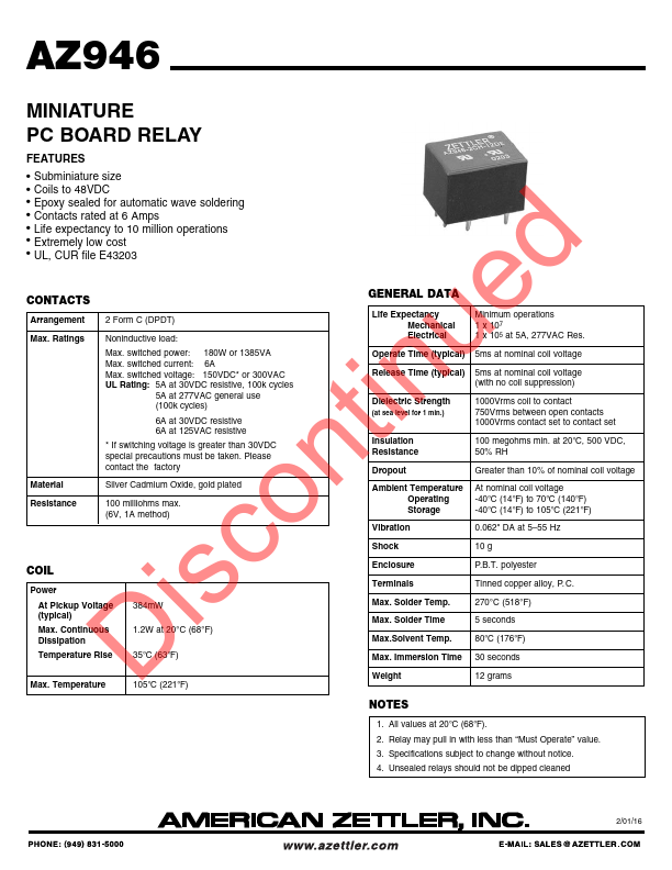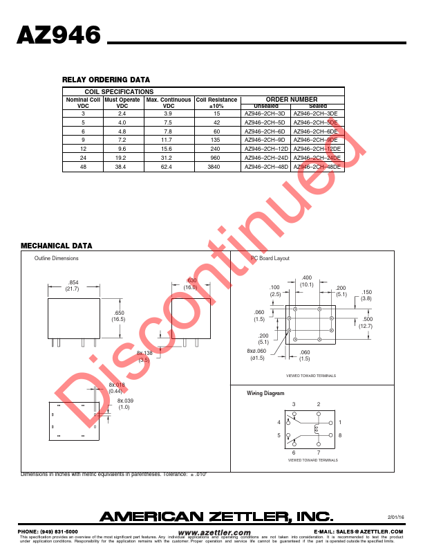 - If switching voltage is greater than 30VDC special precautions must be taken. Please contact the factory