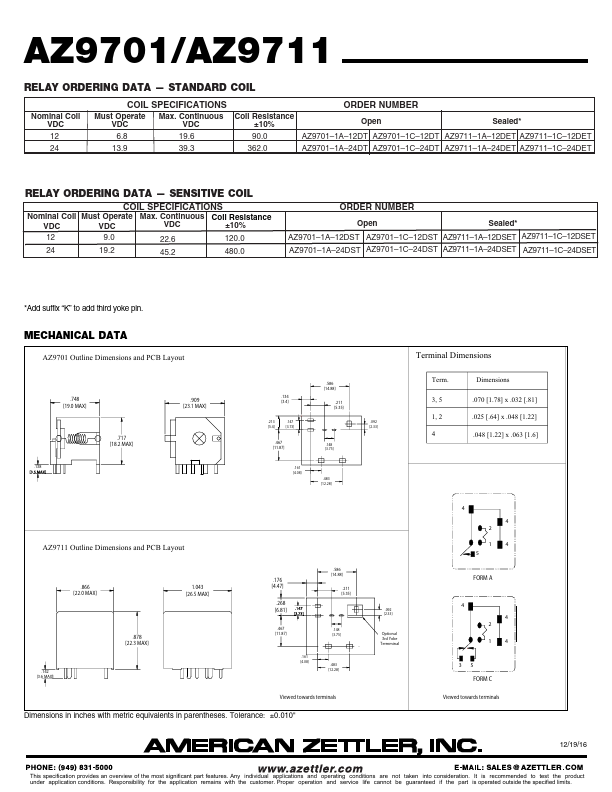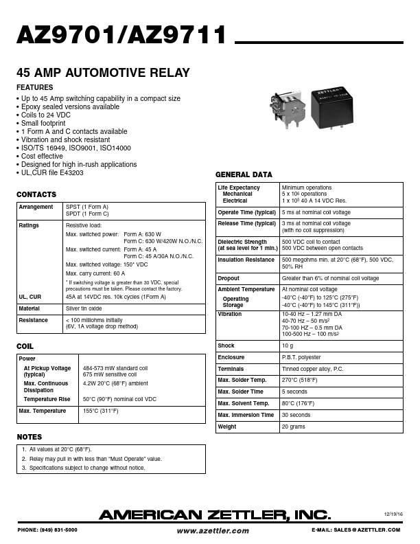 AZ9701/AZ9711 45 AMP AUTOMOTIVE RELAY.