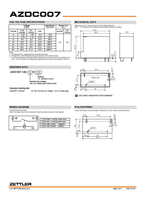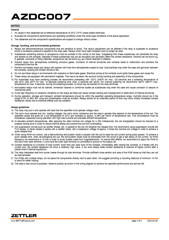 - 75% of nominal coil voltage after applying the full nominal coil voltage for ≥200 ms