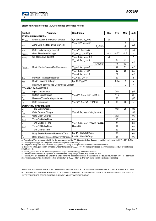 The value of RθJA is measured with the device mounted on 1in2 FR-4 board with 2oz. Copper, in a still air environment with TA =25°C. The value in any given application depends on the user's specific board design.