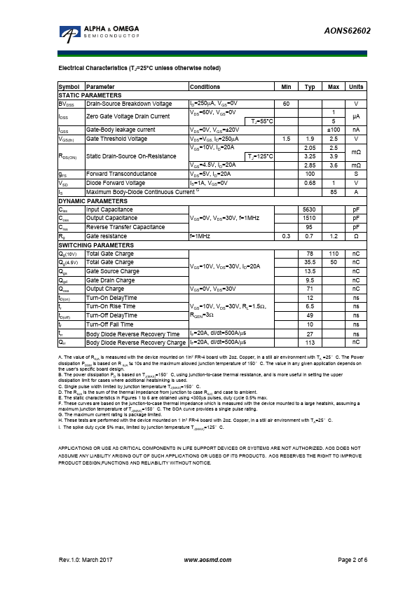 The value of RθJA is measured with the device mounted on 1in2 FR-4 board with 2oz. Copper, in a still air environment.