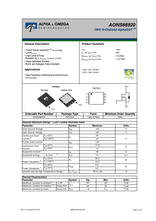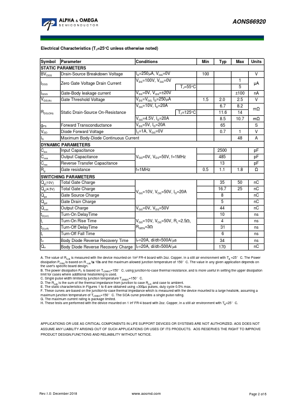 The value of RqJA is measured with the device mounted on 1in2 FR-4 board with 2oz. Copper, in a still air environment.
