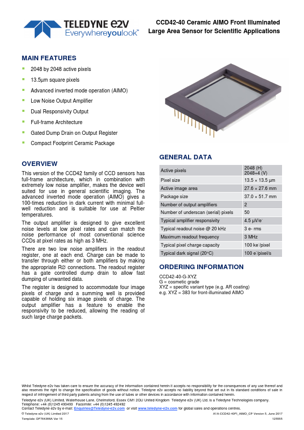 CCD42-40 Ceramic AIMO Front Illuminated Large Area Sensor for Scientific Applications MAIN.