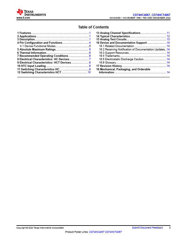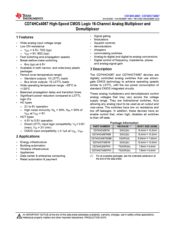 CD74HC4067M Key Features