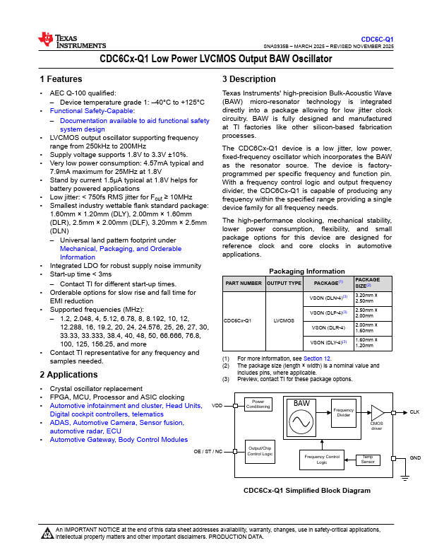 CDC6C125000-Q1 is manufactured by Texas Instruments.