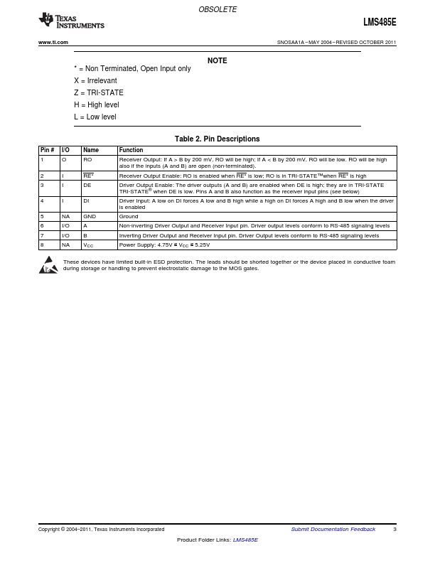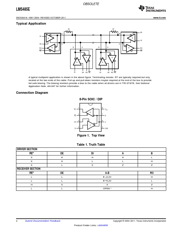 The LMS485E is a low power differential bus/line transceiver designed for high speed bidirectional data communication on multipoint bus transmission lines.