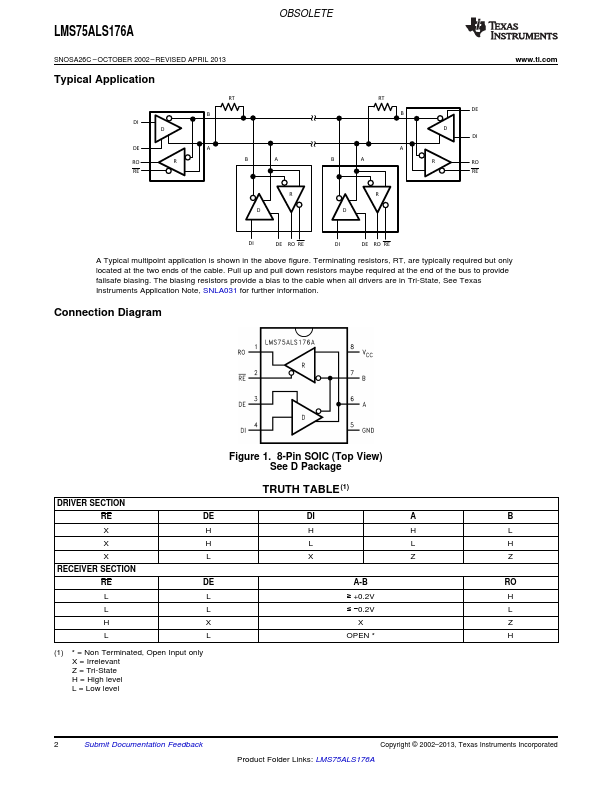 The LMS75ALS176A is a differential bus/line transceiver designed for bidirectional data communication on multipoint bus transmission lines.