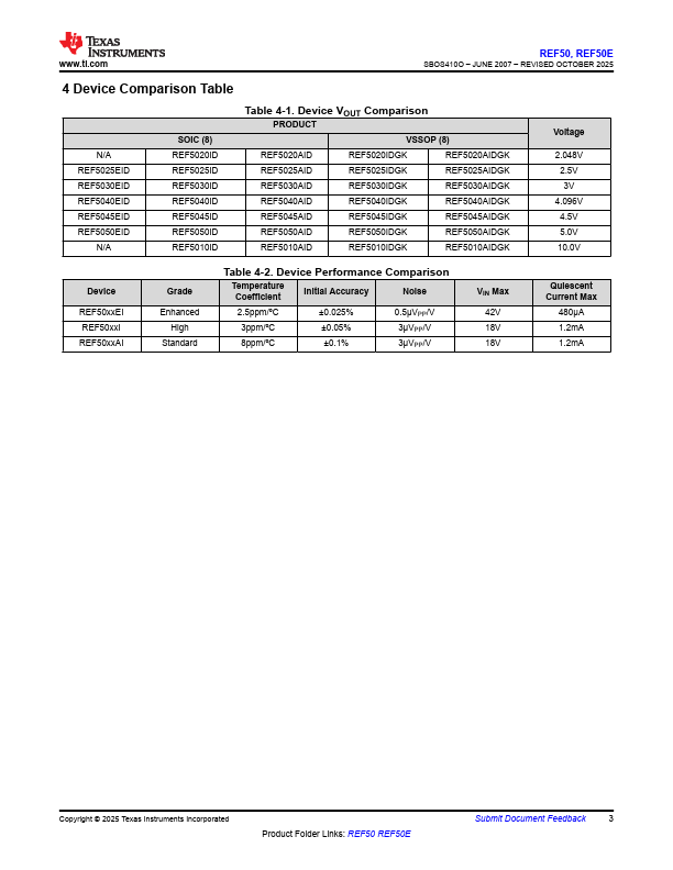 The REF50xx is a family of low-noise, low-drift, very high precision voltage references. The references are capable of both sinking and sourcing current, and have excellent line and load regulation. Achieve excellent temperature drift (2.5ppm/°C) and high accuracy (0.025%) using proprietary design techniques.