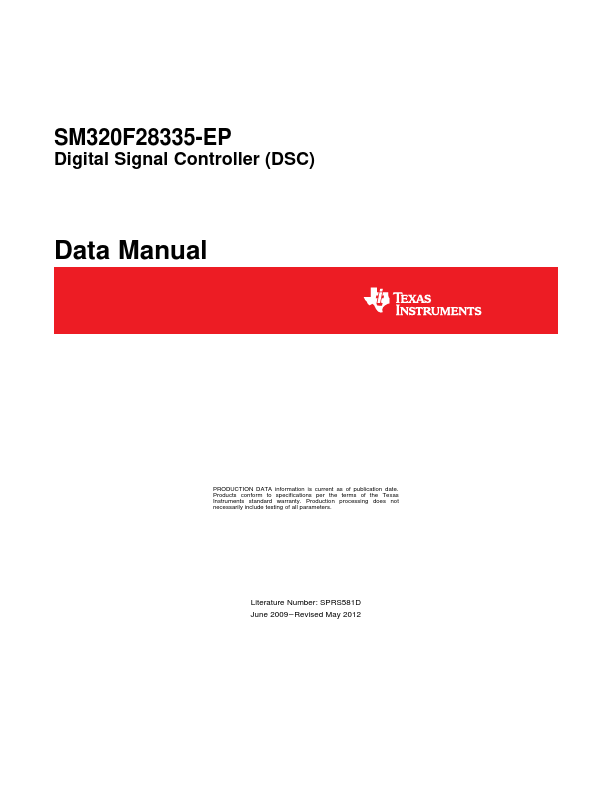 SM320F28335-EP Digital Signal Controller (DSC) Data Manual PRODUCTION DATA information is current as of publication date. Products conform to specifications per the terms of the Texas Instruments standard warranty. Production processing does not necessarily include testing of all parameters.