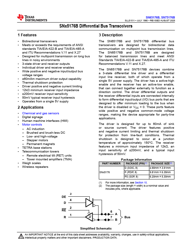 SNx5176B Differential Bus Transceivers