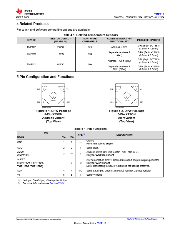 - ±0.5°C → TMP112 (X2SON package)