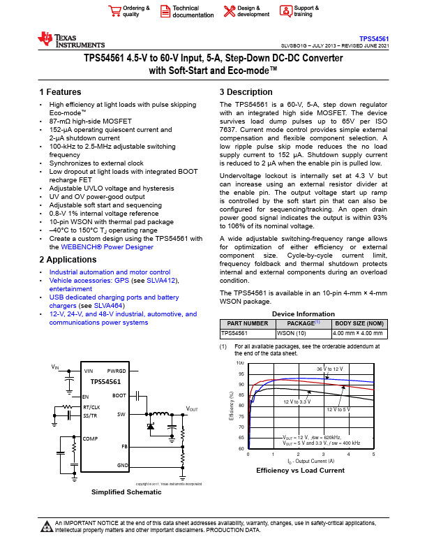 TPS54561 Key Features