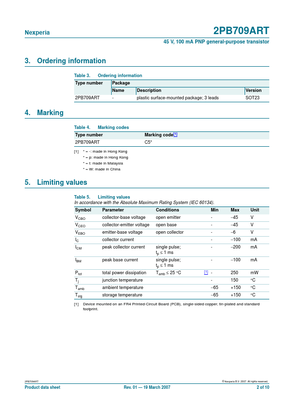 | 2PB709ART | 100mA PNP general-purpose transistor | NXP |