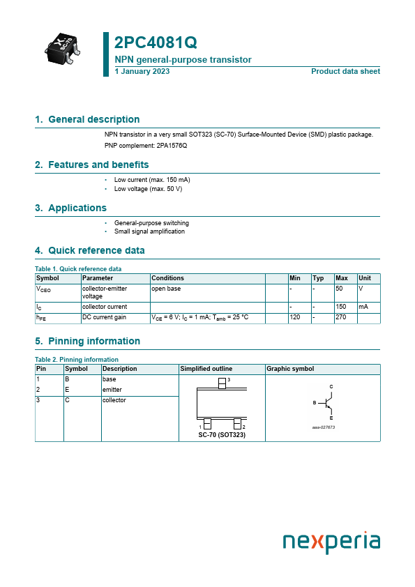 | 2PC4081Q-Q | NPN general-purpose transistor |