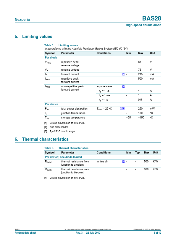 - Repetitive peak forward current: IFRM ≤ 500 mA
