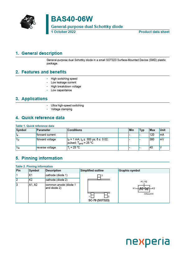 | Datasheet | BAS40-06W-nexperia.pdf |