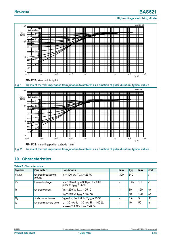 - Repetitive peak forward current: IFRM ≤ 1 A