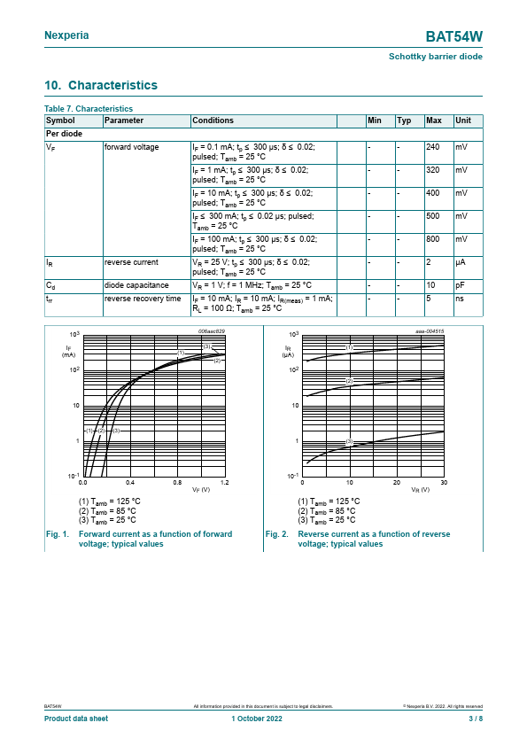 Planar Schottky barrier diode with an integrated guard ring for stress protection, encapsulated in a very small SOT323 (SC-70) Surface-Mounted Device (SMD) plastic package.