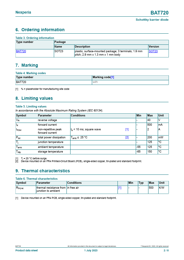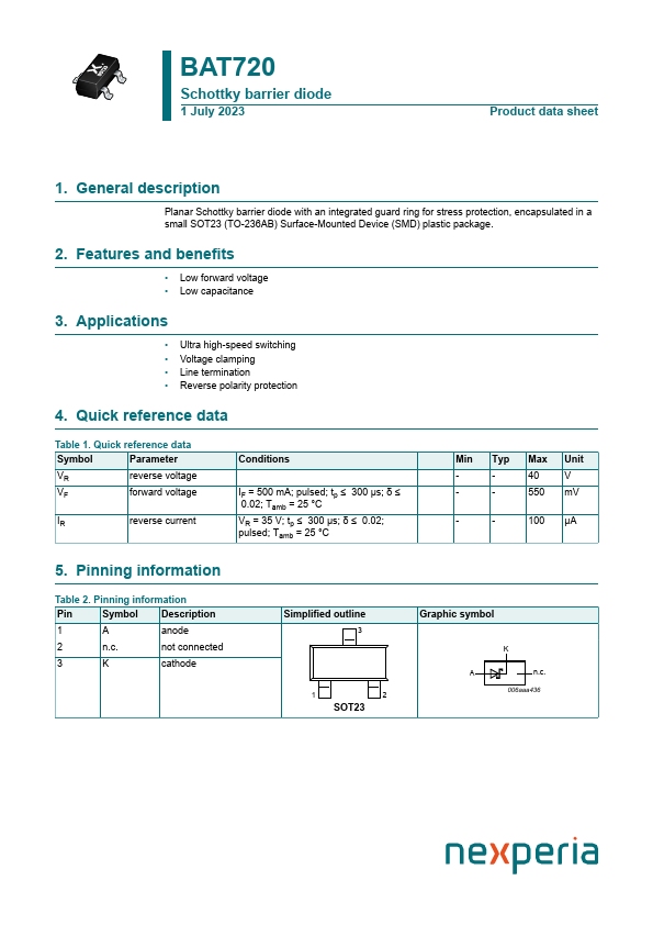 Overview: BAT720 Schottky barrier diode 1 July 2023 Product data sheet 1.