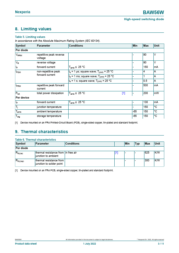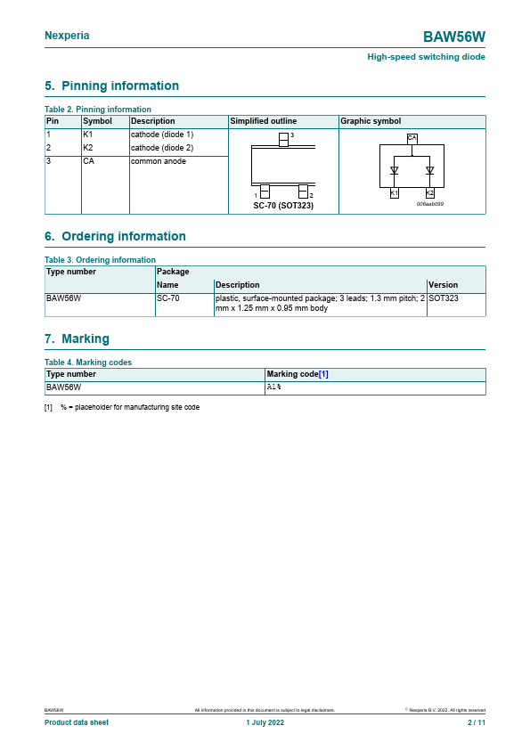 High-speed switching diode, encapsulated in a very small SOT323 (SC-70) Surface-Mounted Device (SMD) plastic package.