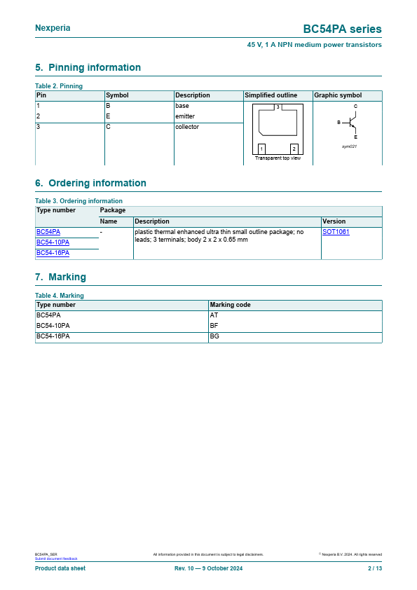 NPN medium power transistor in an ultra thin SOT1061 leadless small Surface-Mounted Device (SMD) plastic package.