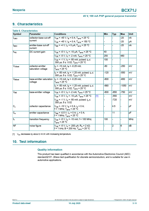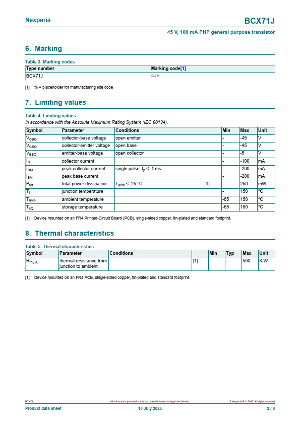 Overview: BCX71J 45 V, 100 mA PNP general purpose transistor 10 July 2025 Product data sheet 1.