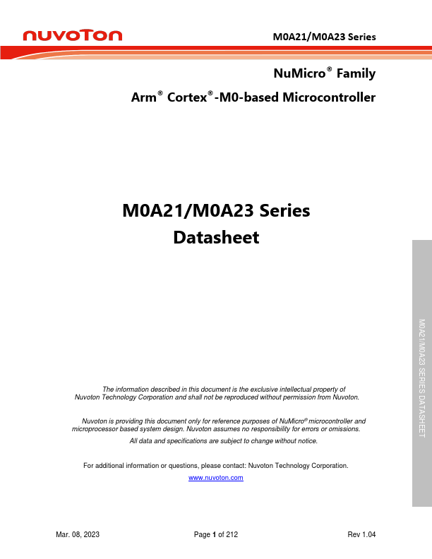 | M0A23OC1AC | 32-bit Microcontroller |